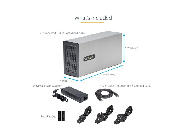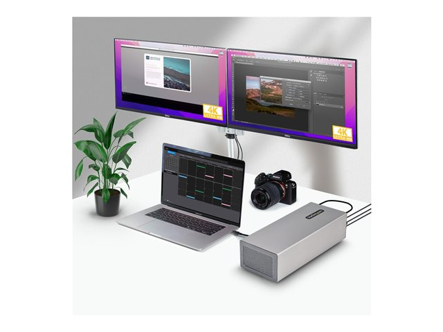 Ajoutez deux cartes compatibles PCI-Express 3.0 x16 et augmentez les capacités potentielles d'un ordinateur portable, d'un ordinateur de bureau ou d'un tout-en-un compatible Thunderbolt 3 ou 4. Ce boîtier d'extension Thunderbolt 3 PCIe vous permet de profiter de la vaste gamme de cartes d'extension PCIe avec des ordinateurs qui ne disposent pas de fentes PCIe. Le boîtier vous permet de connecter un écran externe via les ports DisplayPort (DP) ou Thunderbolt 3, prenant en charge des résolutions Ultra Haute Définition (UHD) en 4K ou 8K.