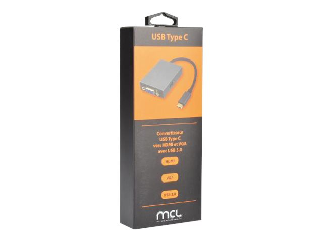 Grâce à ce convertisseur, vous pourrez raccorder votre ordinateur équipé d'une prise USB Type-C sur un écran HDMI ou VGA. Vous pourrez également brancher simultanément sur la prise USB 3.0, une souris, un clavier ou une clé USB.