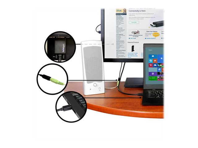 Grâce à cet adaptateur, vous disposerez toujours des connexions dont vous avez besoin. Le port audio de votre ordinateur est abîmé ou bloqué ? Avec ce câble adaptateur, vous aurez quand même du son pour regarder des présentations vidéos, écouter de la musique en travaillant ou discuter sur Skype avec vos collègues.