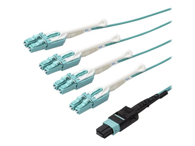 StarTech.com MTP to LC Breakout Cable - 15 ft / 5m - OM3 Multimode - 40Gb - Pull Tab - Plenum - MPO / MTP Connector - Fiber Optic Cable (MPO8LCPL5M) - Câble éclaté - MTP/MPO multimode (F) pousser/tirer pour LC multi-mode (M) pousser/tirer - 5 m - fibre optique - 50 / 125 microns - OM3 - plenum - turquoise