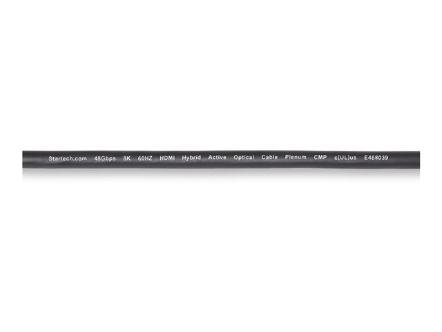 StarTech.com 30ft (9.1m) HDMI 2.1 Hybrid Active Optical Cable (AOC), CMP, Plenum Rated, Ultra High Speed HDMI Fiber Optic Cable, 48Gbps, 8K 60Hz/4K 120Hz, HDR10+/FRL/TMDS/eARC - CMP In Wall HDMI 2.1/2.0 Cord (8K-A-30F-HDMI-CABLE) - Ultra High Speed - câble HDMI - HDMI mâle pour HDMI mâle - 9.1 m - cuivre hybride/fibre optique - noir - Active Optical Cable (AOC), support 4K 120 Hz, support pour 8K60Hz, support pour 4K60Hz
