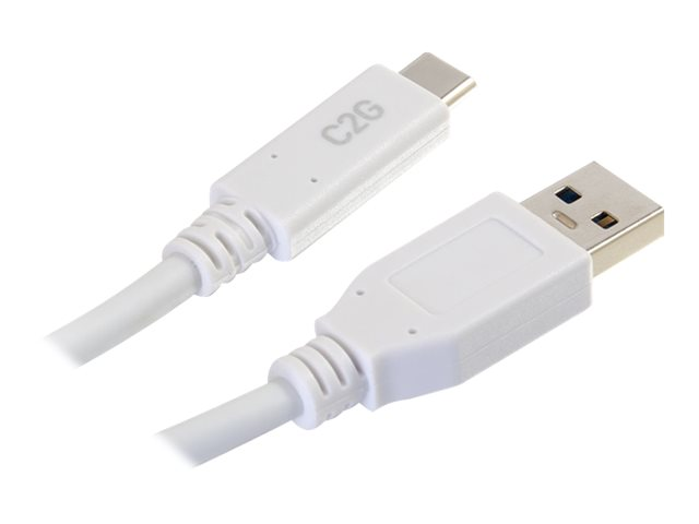 C2G 3ft USB C 3.0 to USB Cable - USB C to USB A - M/M - Câble USB - USB type A (M) pour 24 pin USB-C (M) - USB 3.1 - 30 V - 3 A - 91.4 cm - blanc