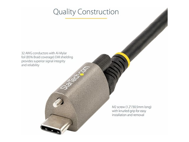 StarTech.com Câble USB C 10Gbps 1m à Verouillage par Vis Supérieure - Câble USB 3.1/3.2 Gen 2 Type-C - 100W/5A Power Delivery, DP Alt Mode, Cordon USB-C à Vis Unique (USB31CCTLKV1M) - Câble USB - 24 pin USB-C (M) droit/bloquant pour 24 pin USB-C (M) droit - USB 3.2 Gen 2 / DisplayPort 1.4 /Thunderbolt 3 - 1 m - support 8K - gris, noir