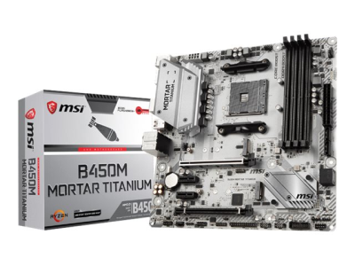 MSI B450M MORTAR TITANIUM - Carte-mère - micro ATX - Socket AM4 - AMD B450 Chipset - USB 3.1 Gen 1, USB-C Gen2, USB 3.1 Gen 2 - Gigabit LAN - carte graphique embarquée (unité centrale requise) - audio HD (8 canaux) B450M MORTAR TITANIUM