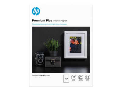 HP Premium Plus Photo Paper - Brillant - 130 x 180 mm - 300 g/m² - 20 feuille(s) papier photo - pour Deskjet 2136, 2622, 36XX; Officejet 52XX, 6000, 68XX, 80XX; Photosmart B110, Wireless B110