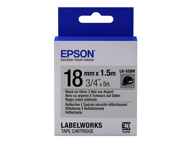 Epson LabelWorks LK-5SBR - Noir sur argent - Rouleau (1,8 cm x 1,5 m) 1 rouleau(x) bande d'étiquettes - pour LabelWorks LW-1000, LW-400, LW-600, LW-700, LW-900, LW-K400, LW-Z700, LW-Z710, LW-Z900