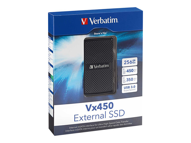 Verbatim Vx450 - SSD - 128 Go - externe (portable) - USB 3.0 - noir brillant 47680
