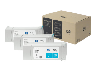 HP 83 - Pack de 3 - cyan - originale - cartouche d'encre - pour DesignJet 5000, 5000ps, 5000ps uv, 5000uv, 5500 uv, 5500ps, 5500ps uv C5073A