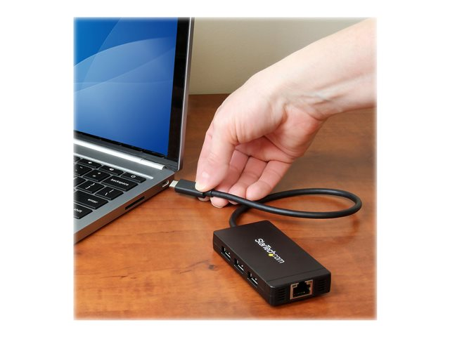 StarTech.com Hub USB-C à 3 ports avec Gigabit Ethernet - USB-C vers 3x USB-A - USB 3.0 - Adaptateur d'alimentation inclus - Concentrateur (hub) - 3 x SuperSpeed USB 3.0 + 1 x 10/100/1000 - de bureau HB30C3A1GE