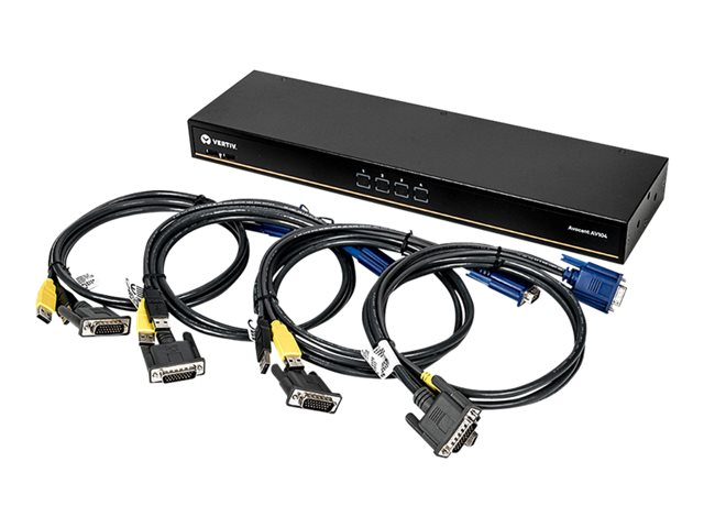 Avocent AutoView AV104 - Commutateur KVM - 4 x KVM port(s) - 1 utilisateur local - de bureau, Montable sur rack - CA 100 - 240 V - avec 4 x câbles 26 broches vers VGA