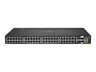 | Interfaces | 48 x 10/100/1000 Base-T RJ-45 4 x 1/10Gbit LAN SFP+ 2x LRM; 2x LRM/MACSec 256 1 x console RJ-45 1 x gestion RJ-45 1 x console (USB) Type C 1 x USB Type A hôte |