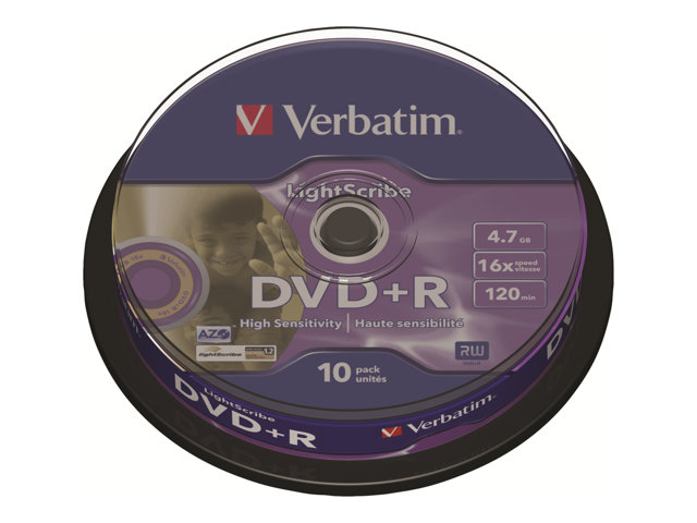 Verbatim LightScribe - 10 x DVD+R - 4.7 Go (120 minutes) 16x - LightScribe 1.2 - spindle 43576